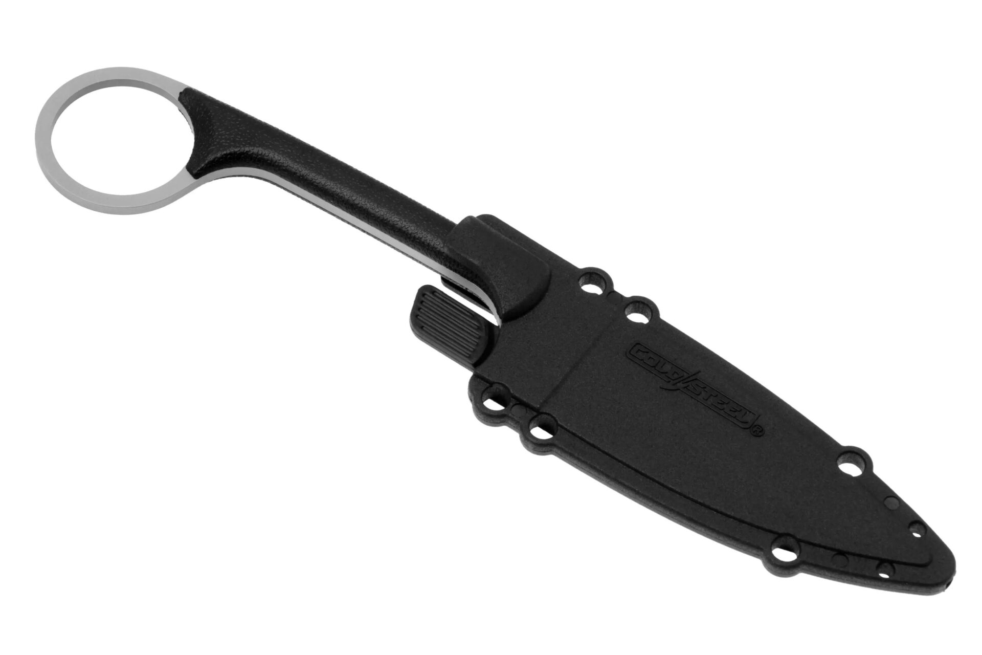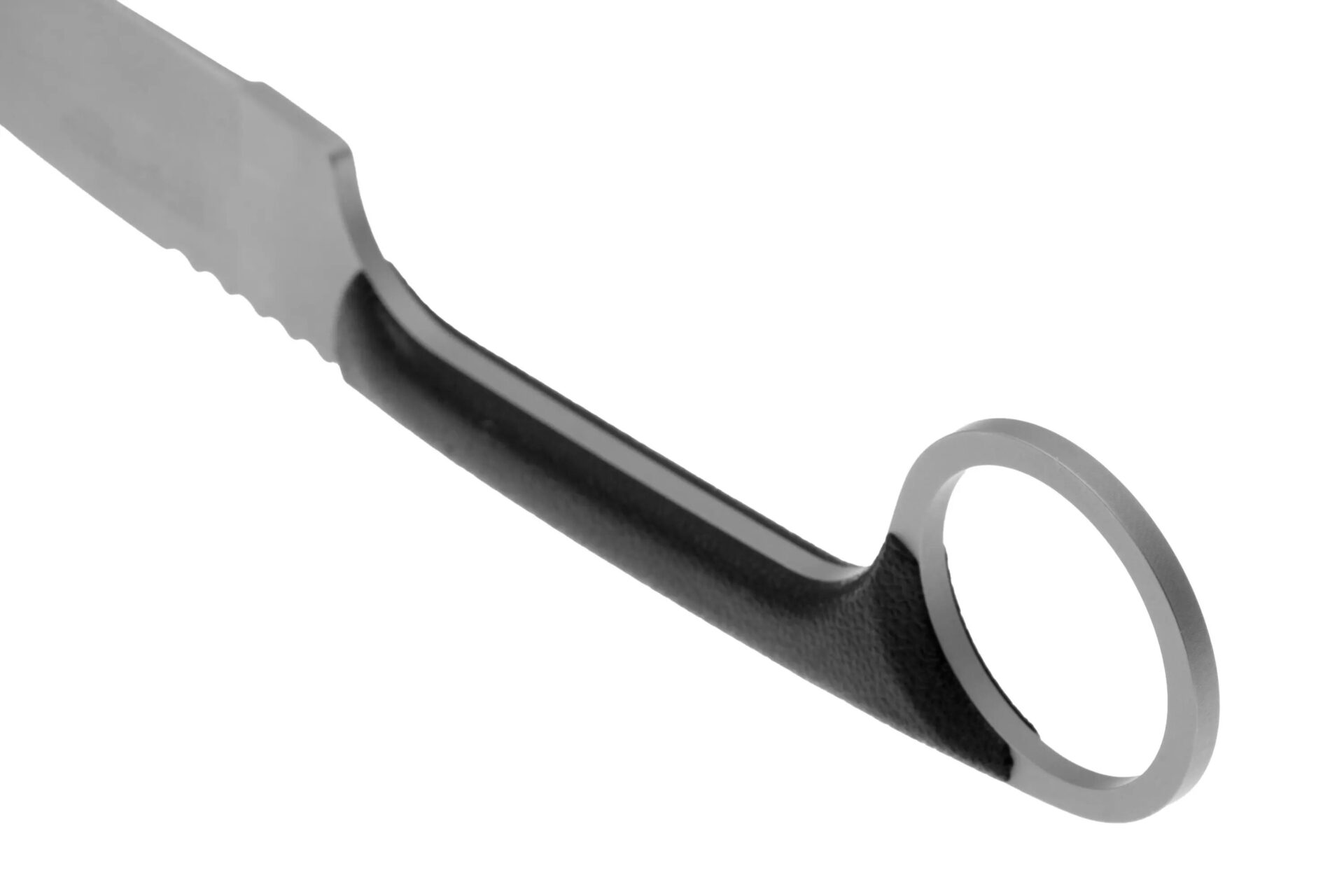 - Интегриран пръстен: Вграденият пръстен за пръста, съчетан с текстурираните полимерни чирени, позволява на потребителя да запази сигурен захват върху острието.