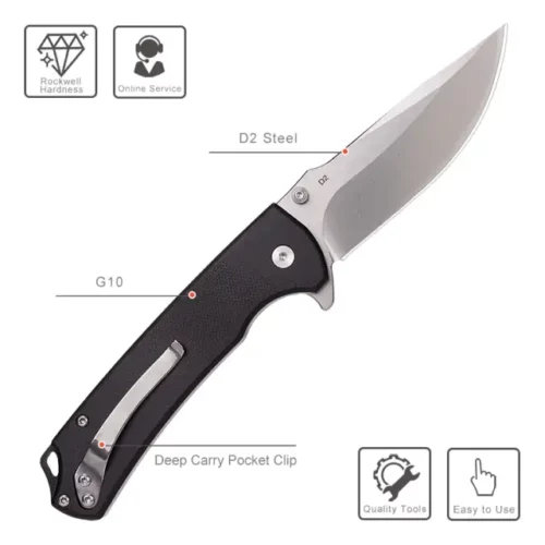 Сгъваем нож Greatech QY32011 с острие от D2 стомана и дръжка G10 – черен
